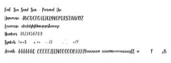 Sea Sand Sun is een handgemaakt script lettertype dat de ontspannen geest van het leven aan de kust vastlegt. Met een levendige, borstelgetekende textuur biedt het lettertype een stijlvolle, casual elegantie die perfect is voor creatieve projecten. De familie omvat verschillende stijlen, waaronder een gedurfde, textuurvariant die een ruige uitstraling heeft, en een lichtere, verfijnde versie die ideaal is voor delicate branding en gelaagde effecten. Het lettertype is perfect voor logo's, strandthema-verpakkingen, zomerevenementposters en ontspannen uitnodigingen.